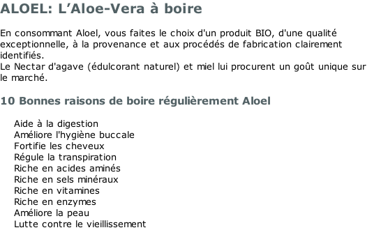 L'Aloe Vera contient 7 des 8 acides aminés essentiels que le corps ne produit pas.